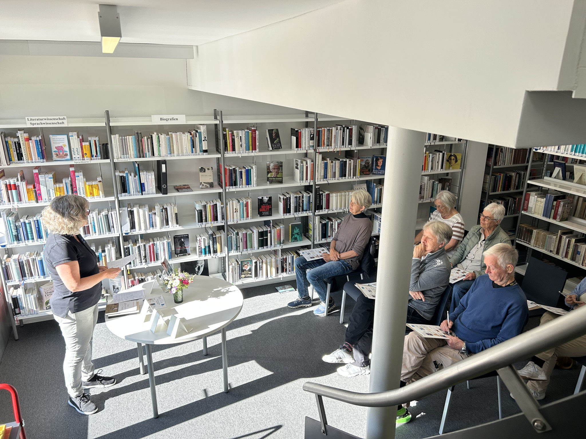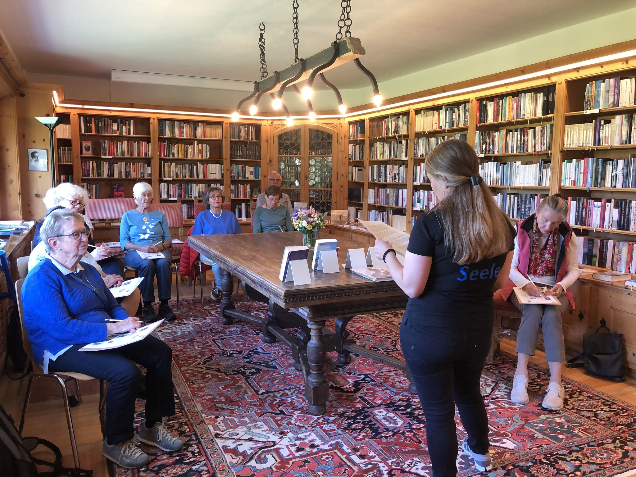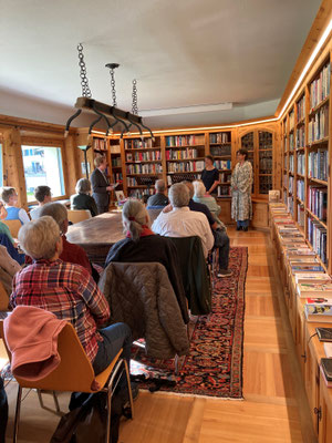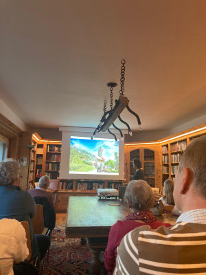 Nach ihrem ersten historischen Roman "Fö" über den Zernezer Dorfbrand von 1872 ist der "Schaukler" die zweite Auftragsarbeit der Dramaturgin und Autorin. Die Südtiroler Gemeinde Naturns wünschte sich ein literarisches Werk zum 100-jährigen Jubiläum der Entdeckung der einmaligen Fresken von St. Prokulus. Selma Mahlknecht berichtete sehr anschaulich, wie sie beim Schreiben des Romans vorging - von der Ideenfindung über Gespräche mit Zeitzeugen bis zur Entwicklung der Hauptfigur, die sich immer wieder an den Fresken orientiert. All dies vor dem Hintergrund der bewegten Südtiroler Geschichte in den vergangenen hundert Jahren. Unsere Zuhörerinnen und Zuhörer waren begeistert und wir auch. Herzlichen Dank für den Besuch!